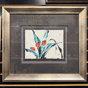 Chinese ink painting 3 lady bugs on blue+Black leaves