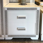 nightstand white w silver bling trim 2 drawer fr Kanes