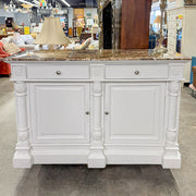 Zoom Cabinet/white base, brown marble top, 2 drawers