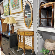 Zoom Entry table- wood, w/ flowers, 1 drawer, mirror.